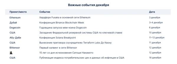 В последний день ноября журнал ForkLog подготовил традиционный календарь важных событий на следующий месяц. 3 декабря — хардфорк Fusaka в основной сети Ethereum. 3-4 декабря — конференция Binance Blockchain Week